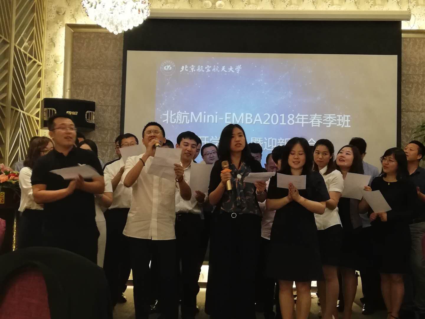 随着EE中心主任胡鹤老师的开场致辞,Mini-EMBA迎新晚会拉开序幕。美好的歌声和精彩的表演,传递着最真的祝福,愿所有的老师同学们未来的日子更加幸福快乐!