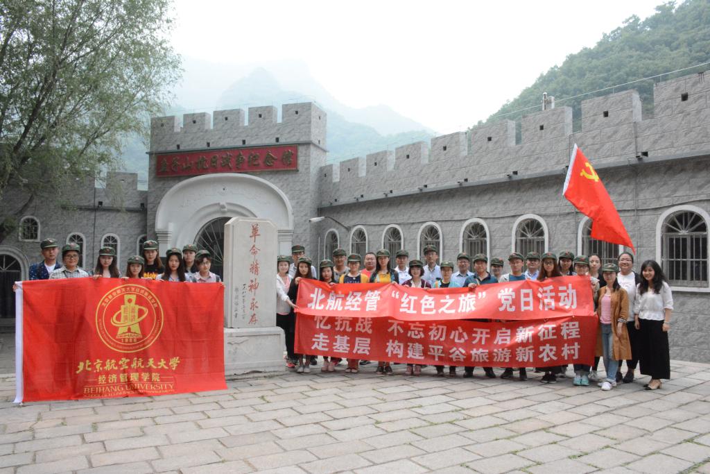 为进一步学习贯彻习近平新时代中国特色社会主义思想,重温我党艰苦创业历程,学习感悟前辈奋斗事迹,传承革命精神,bat365中文官方网站教工八0三党支部、SY1708第二党支部和ZY1708第一党支部于2018年5月12日共同开展“忆抗战不忘初心开启新征程,走基层构建平谷旅游新农村——红色之旅”主题党日活动。党支部成员及积极分子积极参加,在党支部书记的带领下来到平谷区,与平谷区山东庄镇鱼子山村党总支进行支部共建,并参观了鱼子山抗日战争纪念馆。