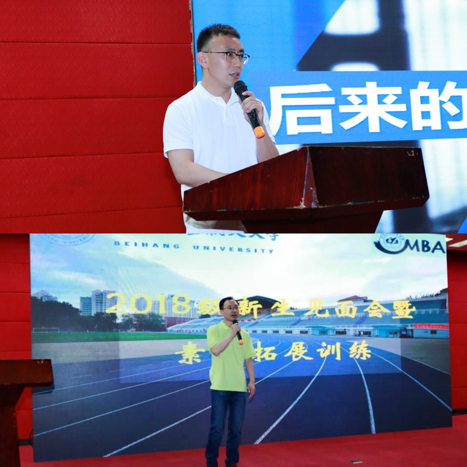 接下来,2017级在校生代表联合会主席刘亚楠以“为什么就读MBA”为主线,分享了入学一年以来的收获;2018级新生代表郭亚雄代表全体新生发表了入学感言。
