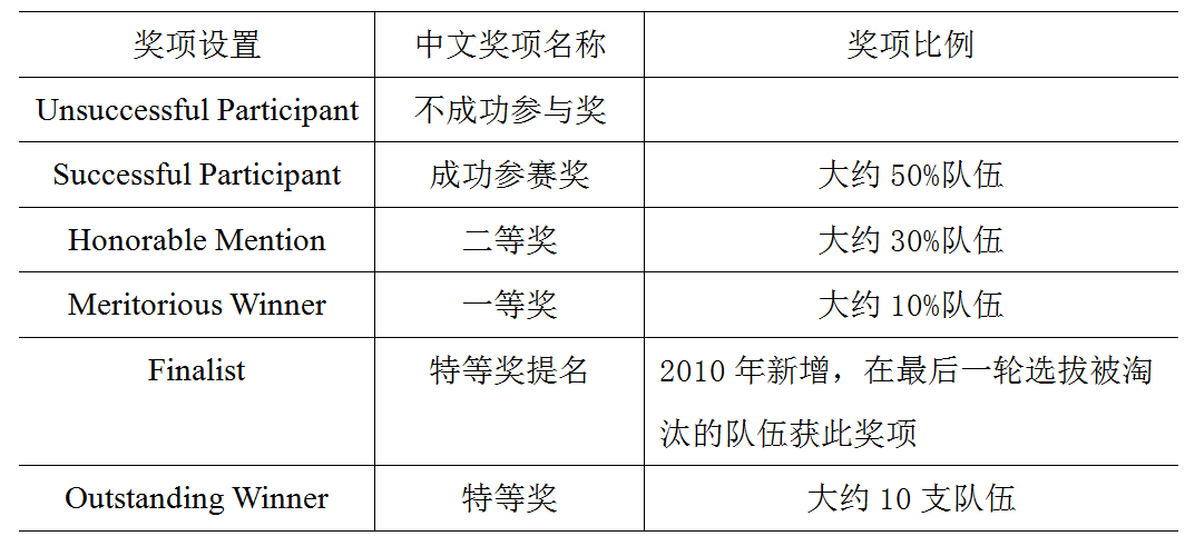 美赛奖项设置