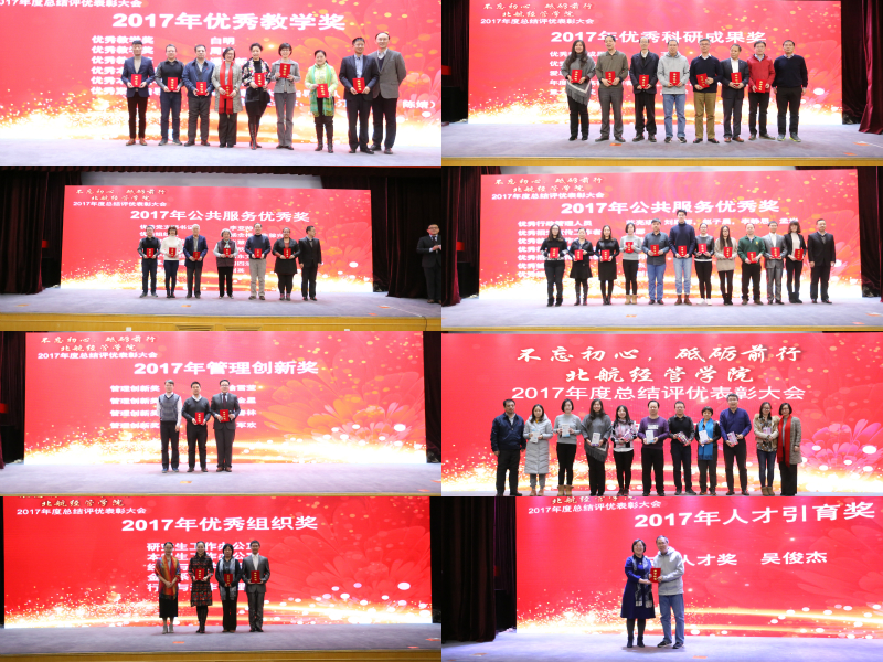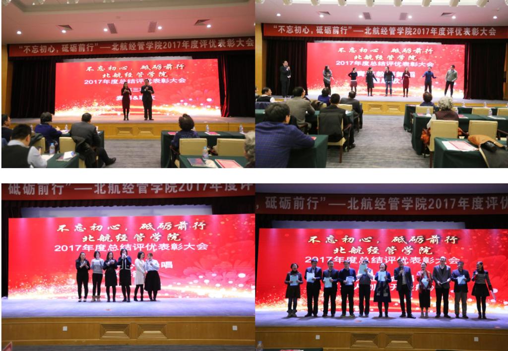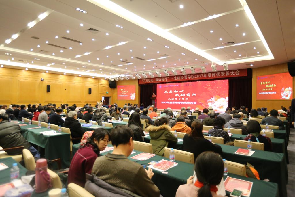 携带着2017年的累累硕果,憧憬着2018年的美好希望,bat365中文官方网站于2018年1月26日下午,在如心会议中心大报告厅隆重举行“不忘初心,砥砺前行”—北航经管学院2017年度评优表彰大会。学院全体教职工、退休教师代表等共计160余人出席了评优表彰大会。