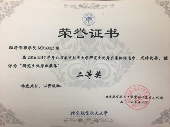 在刚刚结束的2016—2017学年bat365中文官方网站研究生优秀班级体评选活动中,bat365中文官方网站MB16083班,以优异的成绩,被评为“研究生优秀班集体”二等奖。