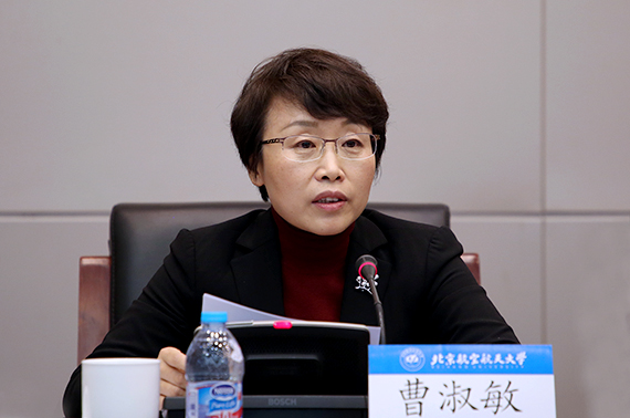 曹淑敏表示坚决拥护、坚决服从中央的决定,衷心感谢组织的信任和重托。回到北航担任党委书记,深感光荣、责任重大。曹淑敏对张军同志为北航发展做出的巨大贡献表示由衷的敬意。她指出,一是牢固树立“四个意识”,深入学习习近平新时代中国特色社会主义思想,始终在思想上政治上行动上同以习近平同志为核心的党中央保持高度一致。坚决维护党中央权威和集中统一领导。二是努力学习,担当实干、提高能力。三是坚持民主集中制,维护好班子和谐、干事创业的良好氛围。四是廉洁自律、严格要求自己。她表示将与徐惠彬校长一起带领北航领导班子和全体教职工,以习近平新时代中国特色社会主义思想为指引,深入学习贯彻落实十九大精神,脚踏实地、努力工作,加快建设世界一流大学和一流学科,推动各项工作取得新进展,不辜负组织的信任和重托,不辜负近四千名教职工、三万名学生、二十万北航校友的期望,为建设教育强国、科技强国做出更大的贡献。