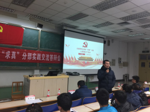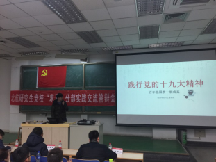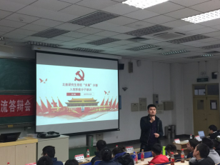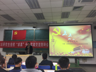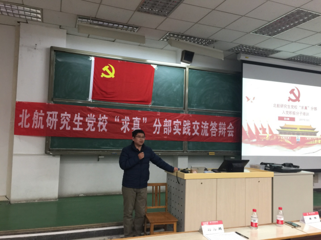 北航研究生党校“求真”分部第4期入党积极分子培训实践交流答辩会于2017年12月19日晚在主M101顺利召开。为学习宣传贯彻党的十九大精神,将“党课”与学习十九大相结合。本期培训的实践内容是以“学习十九大”为主题,以学习研讨、实践体验、总结汇报等小组形式开展活动,并进行总结汇报。出席此次交流答辩会的嘉宾有研究生综合管理处申永超老师,经管学院研究生指导主任单伟副教授,可靠性与系统工程学院党委副书记梁帮龙老师,答辩会由经管学院研究生工作办公室主任衣萌老师主持。