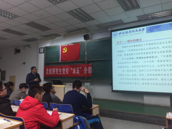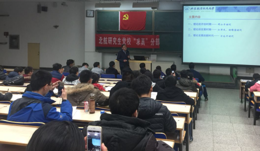 2017年12月6日晚6点30分,北航研究生党校“求真”分部第四期入党积极分子培训的第一次党课在主M101教室顺利进行,来自12个不同学院的196名入党积极分子参加了本次党课的学习。此次党课的主讲嘉宾为经管学院党委书记刘志新教授,由经管学院研究生指导主任单伟副教授主持。