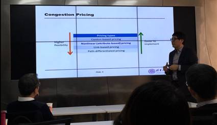 报告中,何方副教授比较了基于路径的收费、基于路段的收费、基于边界线的区域收费和基于路段可加的交通属性进行非线性收费的不同。路段可加的交通属性可以是出行距离、出行时间和尾气排放等。基于路段可加的非线性收费在现实中比较容易实施,可以相对有效地达到缓解拥堵的目的。从单中心和多中心的线性理想城市结构,到实际的一般离散交通网络,何教授针对基于路段可加的非线性收费问题进行了系统全面地建模与分析,论证了形如连续性、唯一性、单调性和凹性等非线性收费的一些基本性质。