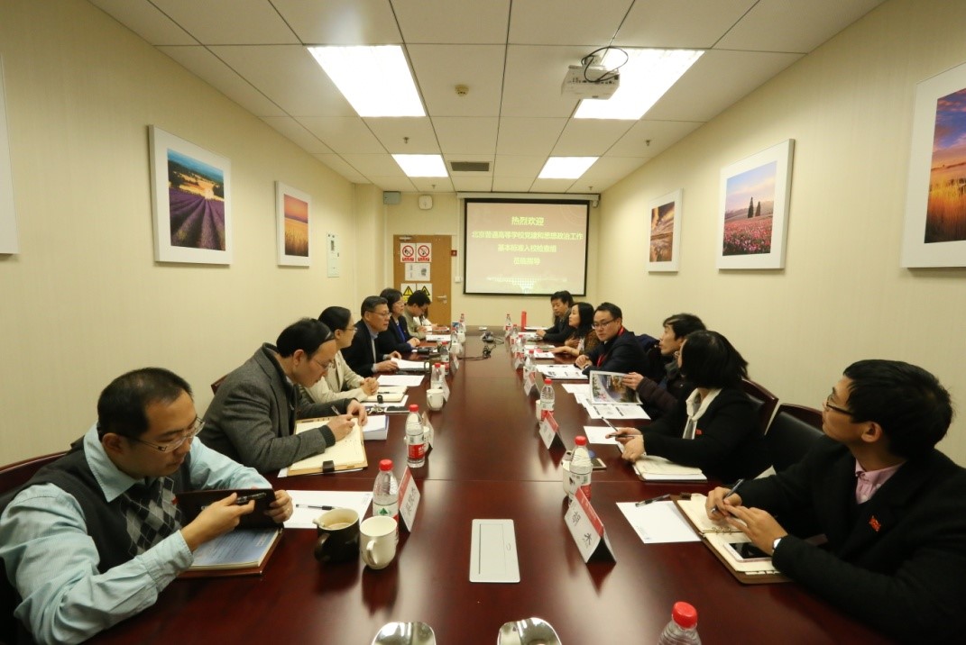 11月27日,北京高校《党建和思想政治工作基本标准》检查组一行来到bat365中文官方网站,通过听取汇报、审阅材料、交流座谈、实地走访等形式,全面检查学院五年来贯彻落实《基本标准》、开展党建和思想政治工作的情况。