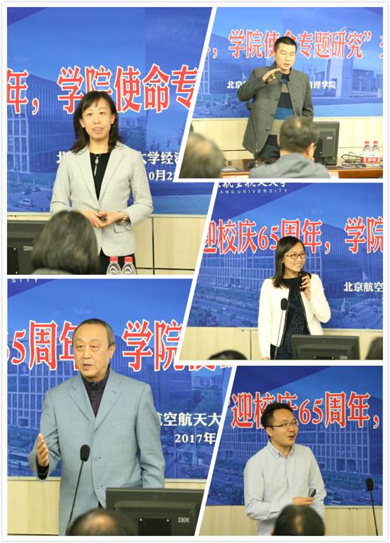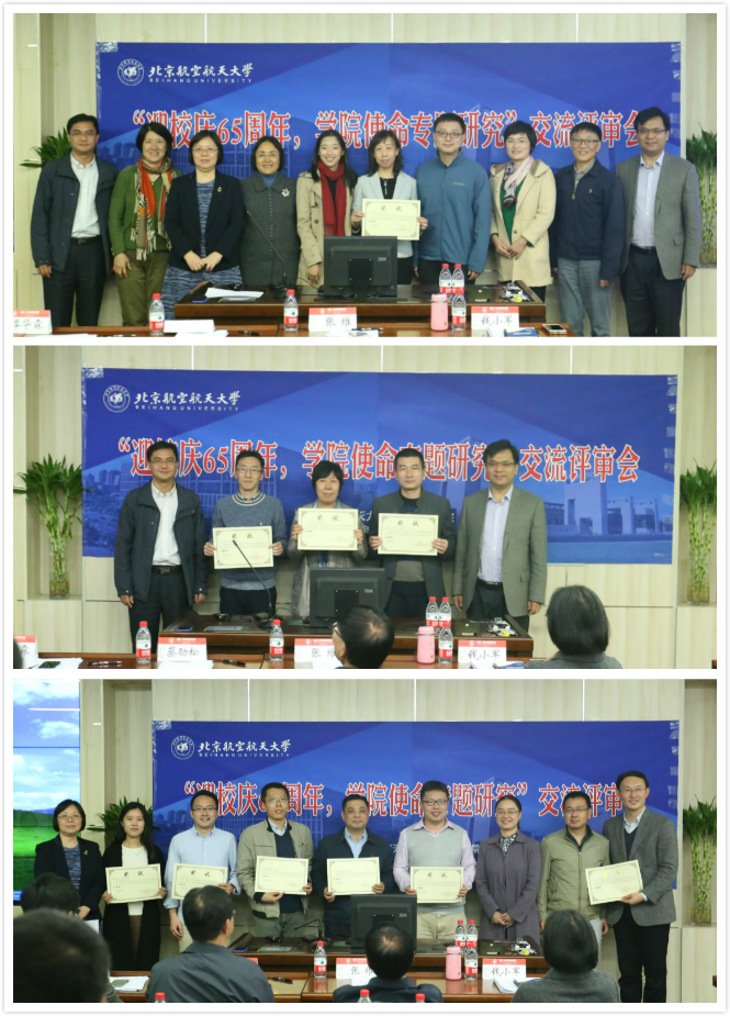 在党的十九大胜利召开之际,为了配合学校加快推进“双一流”建设,持续提升学院办学质量,促进学院教育国际化规范化发展,10月23日下午,bat365官网在A622教室召开“迎校庆65周年,学院使命专题研究”交流评审会。天津大学张维教授、清华大学钱小军教授、北航蔡劲松教授和校党委宣传部谭华霖部长等校内外专家和部分学院领导组成评委会对学院使命专题研究成果进行评议,课题组成员及其他教师50余人参加评审会。