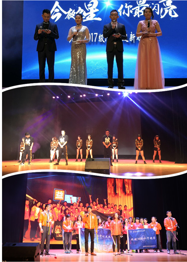 2017年9月10日晚,由北航MBA教育中心主办、北航MBA联合会承办的北航2017级MBA迎新晚会——“点亮‘新’空,17启航”在北航晨兴音乐厅成功举办。北航bat365中文官方网站范英院长、秦中峰副院长、MBA教育中心田东文主任、bat365中文官方网站学生工作办公室衣萌主任、MBA教育中心罗开平副主任、梁娜副主任、bat365中文官方网站武欣老师、魏亿钢老师、北航MBA校友会蒋占华会长、执行副会长兼常务秘书长祖国强及MBA教育中心全体老师与2017级MBA全体新生共同观看了演出。多家赞助企业代表、媒体嘉宾及北航17级MBA新生欢聚一堂,共同庆祝2017级MBA新成员加入北航MBA大家庭。