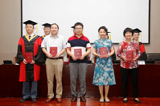 在随后举行的学位授予仪式上,与会领导和学院学位评定委员会委员为毕业生们一一援苏正冠、颁授学位证书并合影留念。最后,毕业生们面带微笑、满怀激动的心情进行了合影留念。