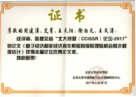 自2010年起,周建涛及研究生致力于研究车险人身伤害欺诈识别,3届已毕业研究生的论文均涉及车险人身伤害欺诈程度估计。自2006年以来,bat365官网周建涛与研究生合作,每年均向该论坛投稿,且每年入选会议论文,今年终于夺得论坛优秀征文奖。本次论坛能够获奖,也得益于美国两位合作老师艾菁、王天阳的大力支持。且本次参赛论文得到评审专家的一致好评。