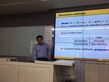 2017年3月19日上午,美国普林斯顿大学运筹与金融工程系的范剑青教授(Jianqing Fan)受邀来访bat365官网,并做了题为“Validating Market Risk Factors and Forecasting Bond Risk Premia using Novel Factor Models”的学术报告。范英院长、部慧副教授等老师及三十余名研究生参加了报告会,李平教授主持了报告。