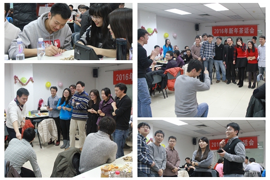 在MBA联合会与志愿者的共同组织参与下,茶话会精彩纷呈。师生欢聚一堂,畅谈理想和生活,彼此交流热烈,场面温馨感人。整个互动环节分为三个部分:相识相知,缘分与惊喜,娱乐连连看。同学们分成八个小组,在相识相知的部分中,大家通过简单的自我介绍方式先组内相识,最后再由一名队员向所有同学介绍各位组员的基本信息,整个过程温馨而欢快。缘分与惊喜部分给大家带来的是最诚挚的新年祝福,每位同学在卡片上提前写好心愿,再统一放入箱内,同学们从中随机抽取,再帮助完成所抽卡片上心愿。这一环节让我们对于实现自己愿望的同学产生亲近感和无限的期待。到了娱乐连连看环节,整个茶话会迎来了高潮。每组选出两名队员对既定词语进行肢体描述,而其他所有组员推测词语内容,体现个性的“你划我猜”给大家留下了深刻的印象,整个会场也洋溢着新年的喜悦。