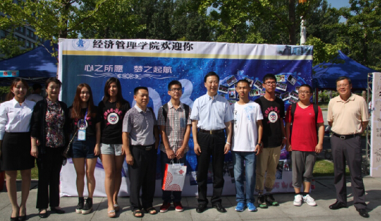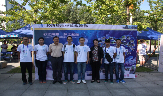 7号是第二天的迎新工作,有了第一天的经验,第二天的工作开展的更加顺利。上午,经管学院院长王惠文教授,经管学院党委书记刘志新教授、副书记王喜忠老师,团委书记、沙河校区专职辅导员张驰老师来到迎新现场与工作人员一起迎接15级新生。校党委书记胡凌云等领导亲临沙河校区,并来到经管学院迎新现场,关心问候新生和家长,让每一个人感受到来自校领导的关怀。随后,胡凌云书记与大一新生及迎新工作人员合影留念。