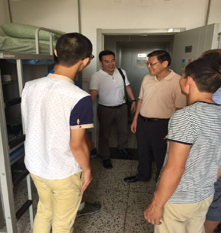 3、王惠文院长和刘志新书记对新生进行慰问,党委副书记王喜忠和团委书记张驰陪同。