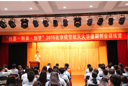 7月18日下午,创意·创业·创梦——2015bat365中文官方网站暑期创业训练营开营仪式暨导师聘任仪式在知行北楼晨星剧场隆重举行。北航校团委书记程波老师,北航bat365中文官方网站院长王惠文教授、北航bat365中文官方网站党委副书记王喜忠老师出席了开营仪式。参加开营仪式的还有12位创业导师,84位训练营营员、部分团干部和辅导员。