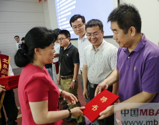 活动最重要的环节,既表彰优秀社会导师和聘任新一届社会导师。由MBA教育中心副主任李亚帅老师宣读名单,并由柏满迎主任颁发荣誉证书,以示对优秀社会导师工作的肯定。随后,中航咨询有限公司董事总经理徐光先生作为优秀社会导师代表发表讲话。他介绍了自己作为社会导师在过去一年中是如何开展工作的,包括他与个别老师在项目和课题上的合作,包括担任招生MBA面试官以及和同学进行的沟通等。他还向第二届社会导师提出了建议,并表示愿意和北航MBA进行更多层面的合作。