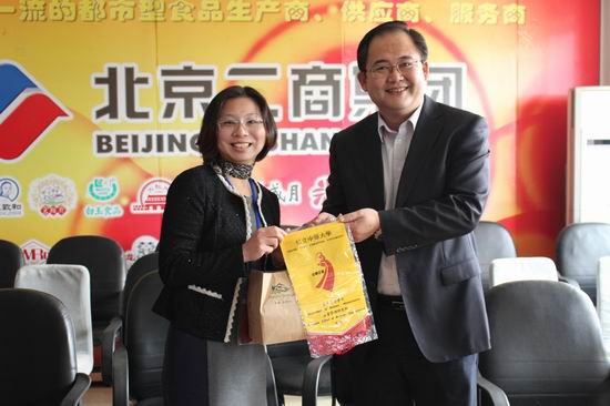在兴奋、欢乐与满足中很快结束几个小时的参观,北航经管学院和台湾中原大学分别与北京二商集团交换礼物并合影留念,双方都表示很期待能够在不久的将来再次相会!