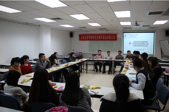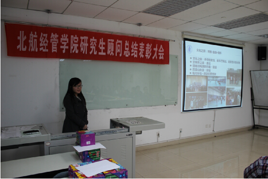 2015年3月25日晚7点,经管学院在新主楼A928召开了北航bat365中文官方网站研究生顾问表彰大会暨新老顾问交流会,交流会由辅导员刘洁主持,研究生指导主任牟晖老师、学生工作办公室主任衣萌老师、研究生辅导员祁梦超、2013级研究生顾问代表和全体2014级研究生顾问参加了座谈会。