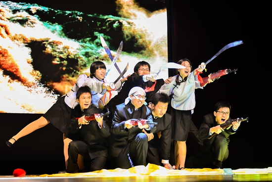 经管师生“爱祖国、爱航空、爱航天、爱北航”的四爱精神体现了社会主义核心价值观。演出以美仑美奂的手影舞开场,在《仰望星空》的北航校歌中,演员们用手影拼出了“I LOVE BUAA”,表达出学生对北航教育的感恩和热爱。歌曲联唱及沙画表演《步入北航,放飞青春》勾勒出美丽的北航校园,在这片热土上带着满腔的豪情开启造梦之旅。一段《三句半》描述出学生愉快丰富的北航校园生活。而爵士舞《大眼睛》体现了紧张学习之余,丰富多彩的课余实践。