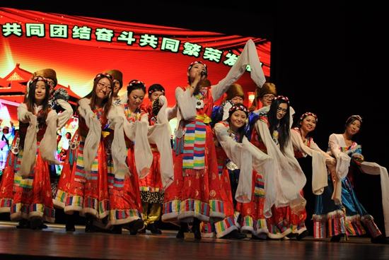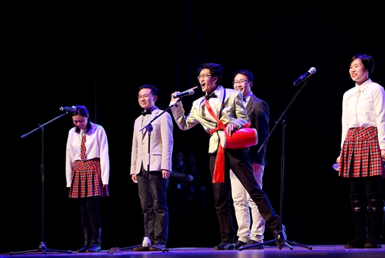 践行社会主义核心价值观是从党和国家命运的战略高度提出的命题。一曲《再唱山歌给党听》由衣萌老师领唱,MBA和普研学生合作的藏族舞蹈抒发了师生诚挚的心声,向党和祖国献礼。一曲《黄河大合唱》以崭新的表现形式,将大家重温革命前辈浴血为国的光荣历史,演绎着新时代青年对祖国母亲的爱。配乐诗朗诵《伟大的中国梦》在悠扬高雅的小提琴曲穿行,慷慨激昂的朗诵词穿透耳畔,感染了全场师生的心灵。小品《情援西藏》以真实故事为背景,生动讲述了援藏干部舍弃家庭亲情和内地的工作生活环境,用理想和青春支援建设雪域高原。