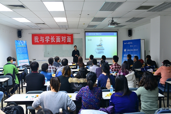2014年11月29日,北航MBA校友会“我与学长面对面”系列宣讲活动第三场,走进MB14082在北航新主楼A928教室圆满举办!至此本年度走进班级宣讲活动完美收官!
