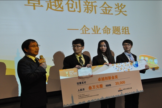 “Corlorfullife”团队获得企业命题组“卓越创新铜奖(一等奖)”。(右起:王涛、王芳、刘波)