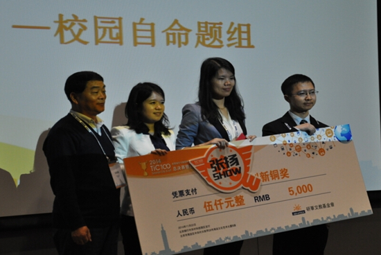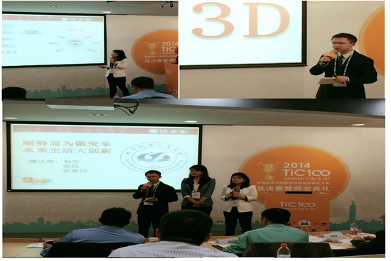 2014年11月21日至23日,我校两支参赛组合——“Corlorful life”和“张扬show” 奔赴昆山,参加“2104 TiC100智慧城市与物联网创新经营模式全国总决赛(以下简称TiC100大赛),经过紧张激烈的比赛角逐,分别收获企业命题组和校园命题组卓越创新铜奖(一等奖)。