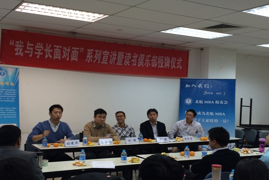 本次活动在同学们与学长的热烈探讨中顺利结束。“我与学长面对面”活动的第三场“走进MB14082”已在紧密筹备之中,相关信息预告会及时通过校友会微信公众平台(BUAAMBA)、官方微博(北航MBA校友会)和MBA中心网站进行公告,欢迎大家持续关注。