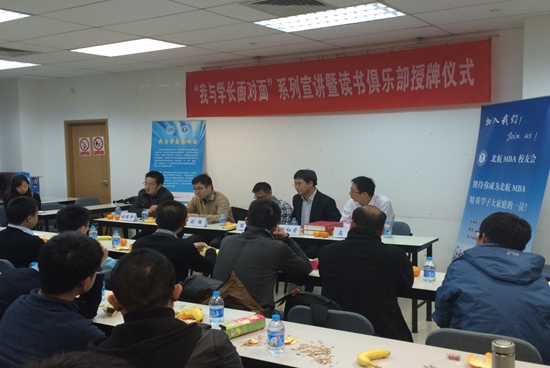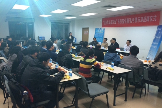 由张士勤、王涛、付世玉、陈青云等同学筹备已久的北航MBA读书俱乐部正式成立,校友会副会长祖国强代表北航MBA校友会为读书俱乐部授牌。北航MBA校友会旗下读书俱乐部,创办于2014年9月,是延续和继承北航MBA精神与文化的校友社团组织。俱乐部的宗旨是服务所有北航MBA校友,以读书会和其他活动为纽带,加强和促进往届校友与在校生的交流互动,实现所有校友们共享书香的交流平台。未来北航MBA校友会读书俱乐部将会给大家提供一个 “以书会友、勤勉共进”的平台,通过多看阅读等渠道,持续给大家推荐好书,并将定期组织读书交流活动,真正让每一个北航的MBA学子收获友谊,收获知识。欢迎大家加入北航MBA校友会读书俱乐部,同时可以关注QQ互动平台302456577,与校友共同参与互动交流。