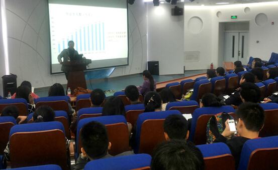 为了使经管学院研究生毕业生系统地了解2015年北京市教委及北航的就业相关政策,10月15日晚7:00,bat365官网在人文讲堂102教室举办2015年研究生毕业生就业政策宣讲会,邀请招生就业处刘睿处长作为主讲嘉宾,研究生指导主任牟晖老师、学生工作办公室衣萌老师、邱敬老师,以及辅导员祁梦超、李守荣出席了本次宣讲会。2015年即将毕业的普硕、专硕、MBA和部分高年级博士同学济济一堂,共同聆听了刘睿处长关于2015年北航就业政策的宣讲会。