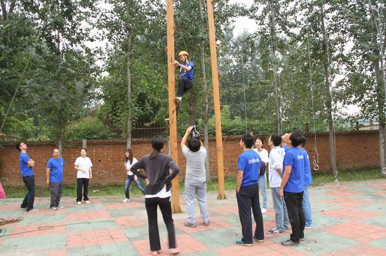 在接下来一天的训练中,同学们经历了急速60秒、高空断桥、信任背摔、毕业墙等培训项目。每一个项目都需要团队成员的合理分工、高效执行、积极配合和忘我的投入。同学们实现了挑战极限、突破自我;学会了团队协作、有效沟通。