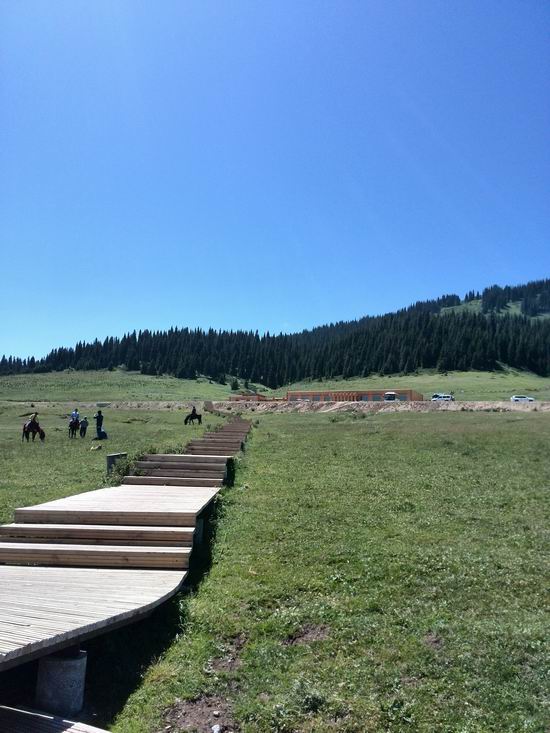 边际--草原、湖、蓝天交接到一处,构成了一条天际线