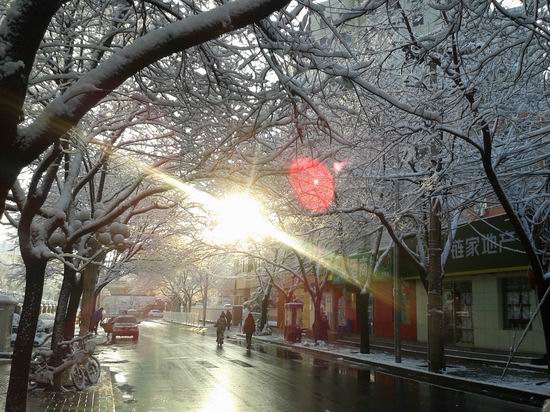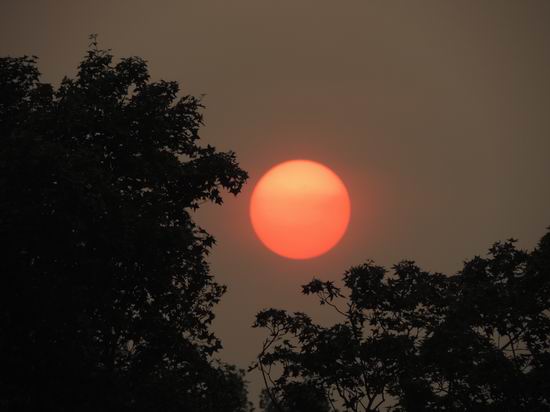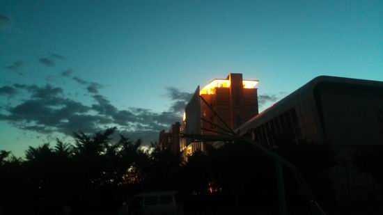 丛植剪影--夕阳余晖衬托下的树丛宛如中国传统艺术中的剪影;散射透入云层的光束将云朵烘托的分外立体。天空、云朵、夕阳、树丛相映成趣