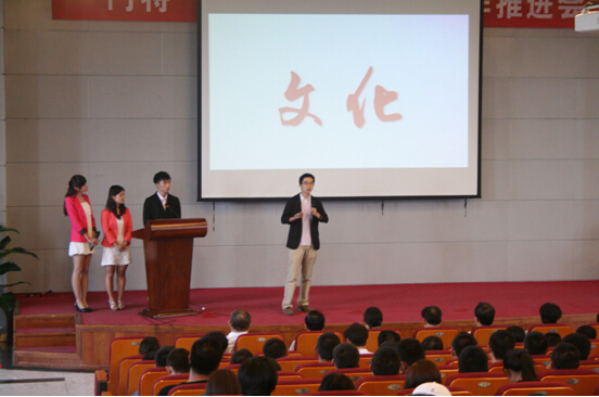 王喜忠老师为大家介绍了“门特”计划的主要载体——文化体验课。文化体验课就是要让大家在感受帝都文化的同时,提升自己的书面表达,口语表达以及统筹规划的能力。为了使参会领导老师深刻理解文化体验课的实施细则,四位2013级门特以小组答辩的形式向大家展示了文化体验课的课程内容,四位门特或幽默、或深情、或朴实、或严肃的展示震撼了全场。