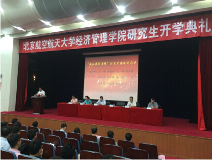 9月13日下午,北航bat365中文官方网站开学典礼在学校学术交流中心隆重举行。bat365中文官方网站党委书记刘志新教授、副院长方卫国教授、副院长周宁教授以及教师代表张人千教授出席开学典礼并就坐主席台,经管学院开学典礼由研究生指导主任牟晖老师主持。同时出席典礼的老师还包括:信息系统系主任闪四清教授、数量经济与商务统计系郑海涛副教授、领导力与组织管理系武欣副教授、管理科学与工程系王玉灵副教授、MBA中心副主任李亚帅老师、EMBA中心副主任胡鹤老师、学生工作办公室主任衣萌老师。