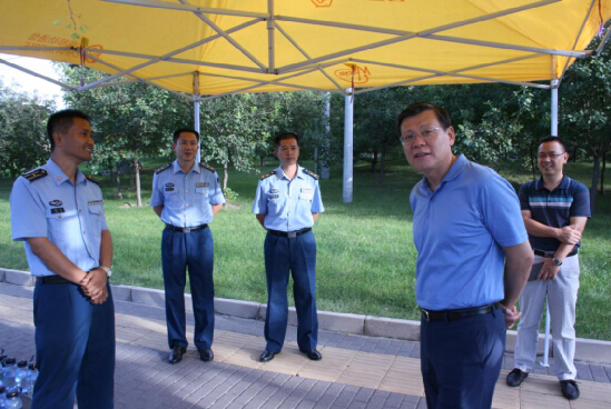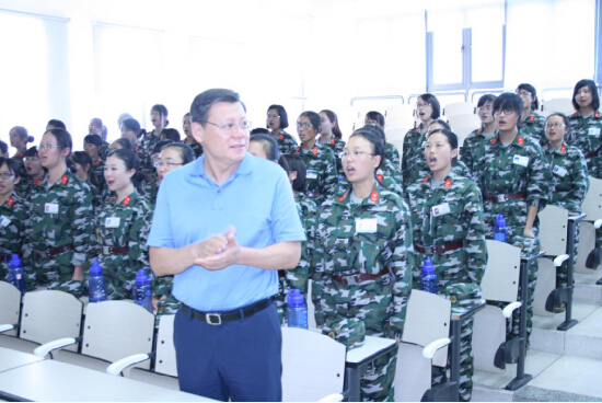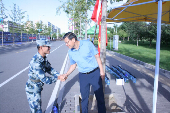 北航副校长张军院士来到训练场地慰问经管学院新生军训学员、带队辅导员、承训部队教官。
