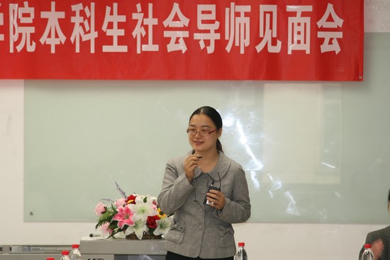 首先职业发展中心主任牟晖老师介绍了到场的各位嘉宾及本科生社会导师项目,启动“本科生社会导师”项目,是为了提升在校本科生的综合素质和职业素养,帮助本科生更好的了解社会,实现学校教育和社会需求的有机结合。根据自愿双选与统筹分配相结合的原则,挑选出34位担任门特的优秀本科生配备了18位有实践工作经验的社会导师,对学生进行学业、事业、职业等的指导,帮助他们深入的了解社会、了解职业,提升社会适应能力和职业发展能力,让学生在专业知识面拓宽的同时,社会活动能力也得到锻炼,综合素质得到全面提高。
