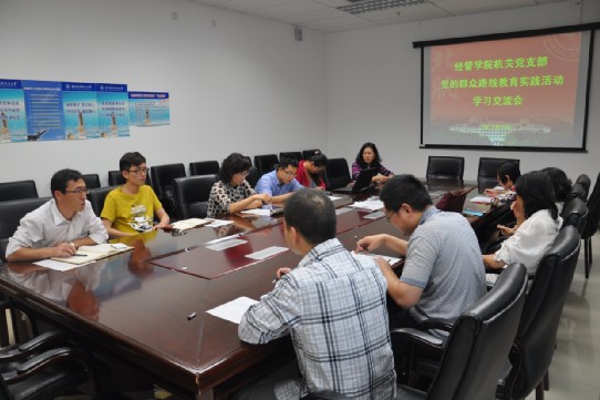2013年9月18日,bat365中文官方网站机关党支部在新主楼A612开展党的群众路线教育实践活动学习交流会,经管学院机关全体工作人员参会。