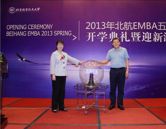 在一片掌声和欢呼声中,院长王惠文教授、党委书记刘志新教授共同开启水晶球,宣告北航EMBA五期班正式起航!