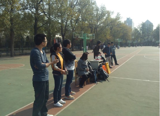 11月8日中午12点经管学院在北航篮球场上组织了一场别开生面的师生篮球赛。本场篮球赛共有两支队伍参赛,一支由经管学院杨海军老师和窦一凡领队,另一支由本科辅导员宋晓东老师和职业发展中心校友会秘书刘玮健老师领队,研究生指导主任牟晖老师也来到篮球场观看了本场欢乐的比赛。