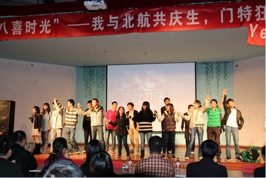 这是经管学院师生狂欢的夜晚,“八喜时光——我与北航共庆生,门特狂欢Yeah”晚会在大家分享生日蛋糕,尽享青春的欢笑中圆满落幕。