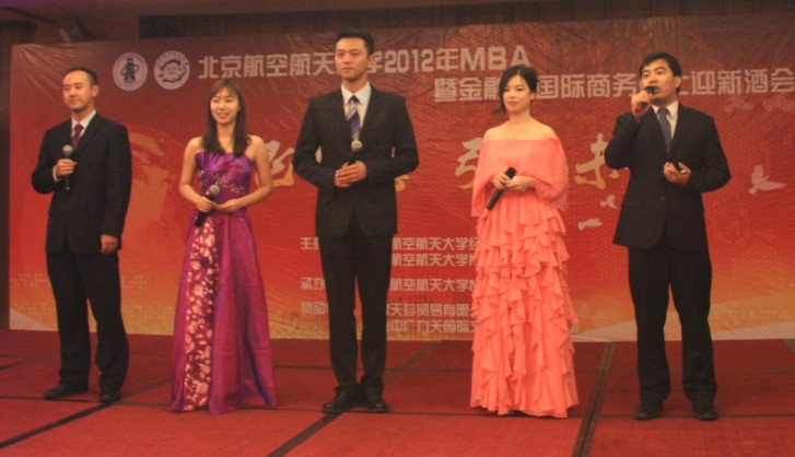 晚会伊始,柏主任向大家介绍了到场的领导、老师及嘉宾。周宁副院长为迎新酒会亲切致辞,介绍了北航MBA教育的发展历程、目前发展状况及北航MBA综合改革试点的新举措,高度评价了往届北航MBA取得的优异成绩。教师代表国际学院院长周泓教授在风趣幽默的话语中道出了对广大新生的欢迎;校友代表98级MBA学生蒋占华先生在讲话中表达了对北航MBA培养的感谢以及对学弟学妹的期望;之后,方卫国副院长为迎新酒会致祝酒辞,宣布2012级MBA暨金融、国际商务硕士迎新酒会正式开始。