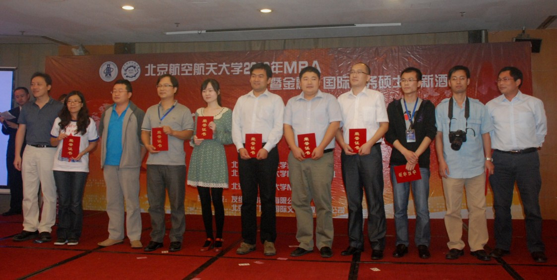 酒会现场,2012年度北航MBA优秀志愿者表彰仪式、2012级北航MBA新生奖学金颁奖仪式同期举行。经MBA联合会提名,MBA中心审核后,共32名同学荣获2012年度北航MBA“优秀志愿者”;经过经管学院考评,共有29名优秀MBA新生脱颖而出,获得了北航2012MBA新生奖学金。