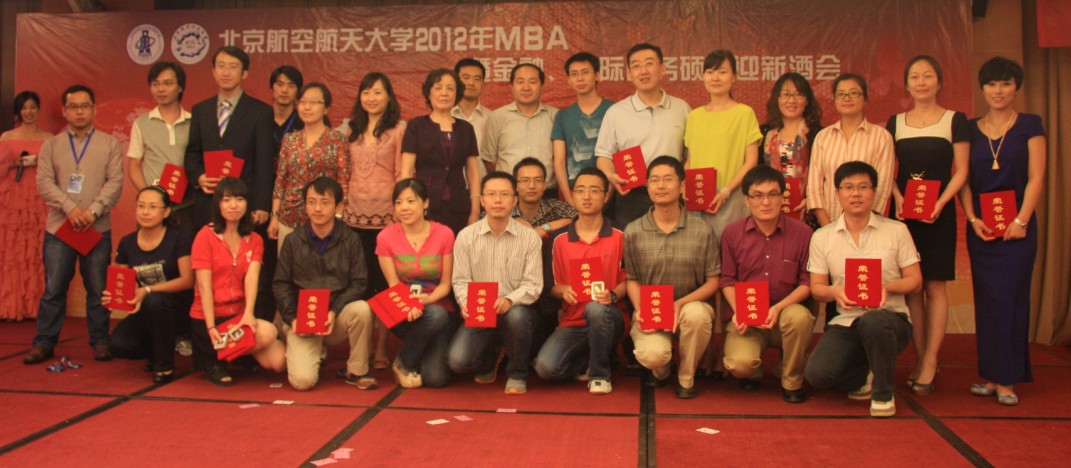 北航经管学院院长王惠文教授、国际学院院长周泓教授;北航经管学院副院长周宁教授、副院长方卫国教授;北航MBA教育中心主任柏满迎教授、副主任秦中峰副教授;管理科学与工程系系主任邓修权副教授、杨玲副教授、王立文副教授;金融系主任赵尚梅教授;赵秋红教授、高志红副教授、谢晓霞博士;学生工作办公室主任衣萌老师、MBA中心老师;北航MBA校友会会长蒋占华先生、中航咨询禹国印先生等校友代表;MBA兄弟院校代表、多家媒体嘉宾及北航2012级MBA、金融、国际商务硕士新生欢聚一堂,共同庆祝新成员加入北航这个最具团队精神的MBA大家庭。此次酒会,获得了由北航SMBA学生联合创办的“友缘天珍”投资管理有限公司和北京中广九天国际文化传媒有限公司的赞助。