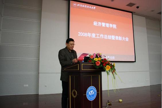 会上,黄海军院长作了题为“北航bat365中文官方网站2008年工作总结及2009年工作要点”的报告,接着刘志新书记宣布了校级岗位考核优秀、学院教师业绩考核获奖人员名单及聘用人员考核优秀获奖名单。