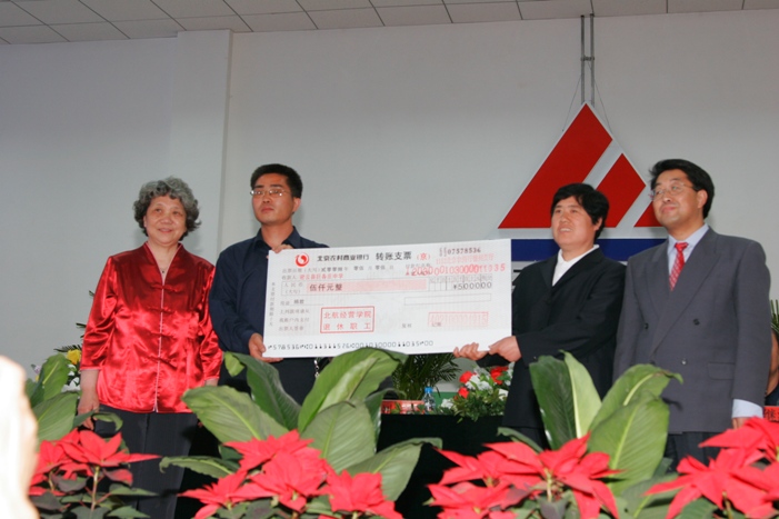 出席本次活动的领导和嘉宾有北航bat365中文官方网站党委书记刘志新教授、北航离退休处郭永秀副处长、密云县教工委张文亮副书记、巨各庄镇党委朱继海副书记、巨各庄中学张文明校长以及经管学院韩立岩教授等。整场活动由“知识造就人才”专题报告会、捐赠仪式、文艺演出及领导致辞四部分组成,由巨各庄中学刘卫红副校长和bat365官网3608党支部赵汀同学共同主持。