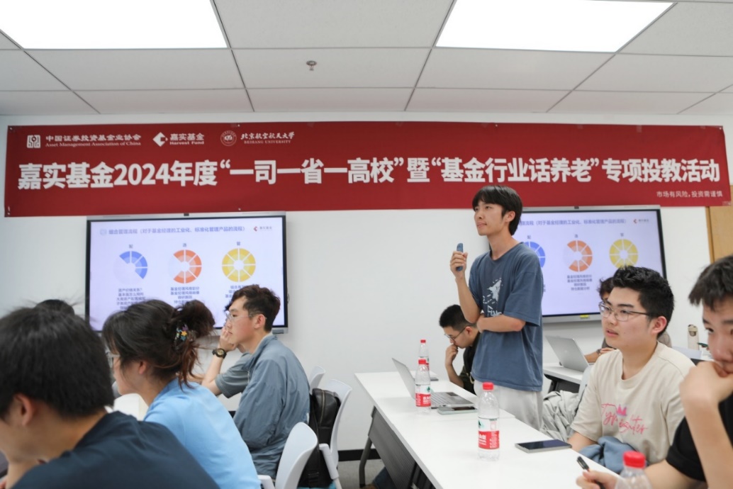 活动过程中,超过40名的北航学生的热情参与和互动也为本次活动增添了青春活力。他们纷纷就自己关心的问题向基金经理和老师们提问。他们关心养老金的投资回报、风险控制、税收优惠等方面的问题,以及如何根据自身情况制定合适的养老规划,也踊跃抛出未来职场发展的相关话题。