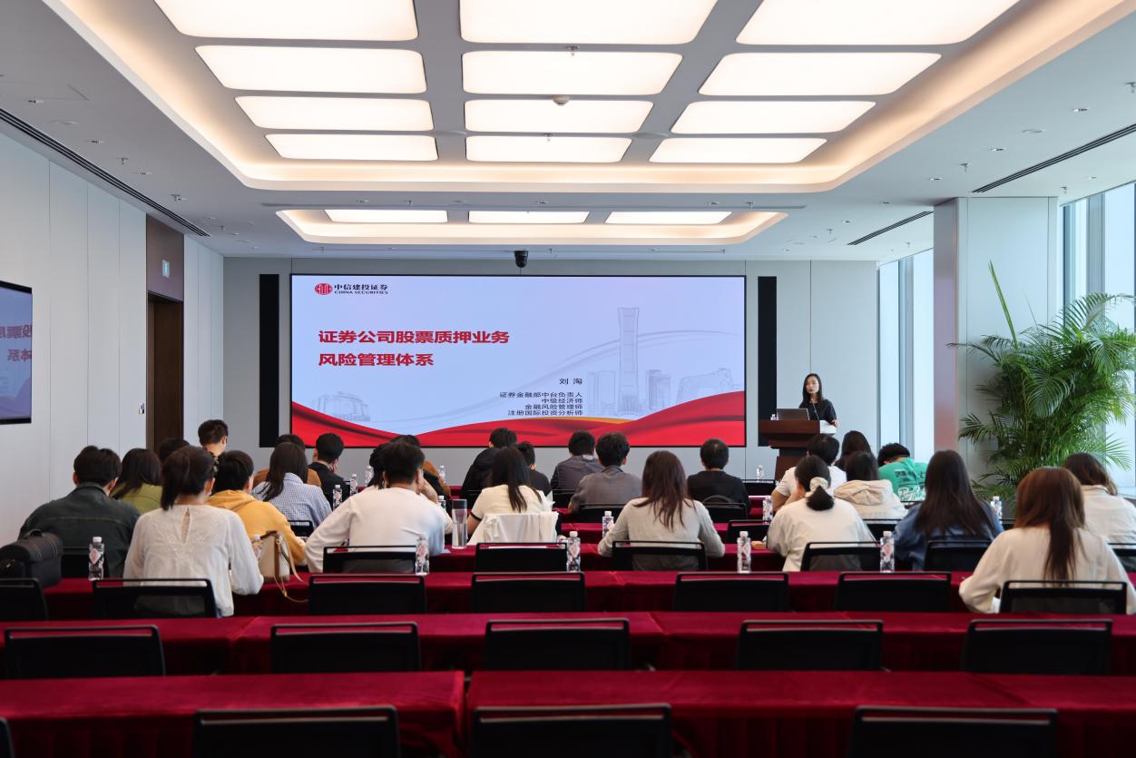 活动伊始,中信建投证券中台负责人刘淘为师生带来题为《证券公司股票质押业务风险管理体系》的专题公开课。课程从业务背景、操作流程、风险识别与管控机制等维度展开,结合典型案例详细解析了股票质押业务的风险预警指标、动态监控策略及风险处置方案,并前瞻性探讨了行业未来发展的机遇与挑战。