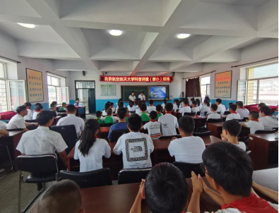 下午,学生们为实践队献上了“惊喜”:唱跳朗诵等多种节目的表演让实践队队员们感受到了学生们的热情与蓬勃生机。随后四名来自北航高水平运动队的队员们为学生带来了更专业的体育课程。结合其运动特长,实践队员们分工明确、配合默契,围绕羽毛球、排球、田径、篮球四个项目为同学们讲解技术要领、耐心进行示范,对同学们的动作加以规范。